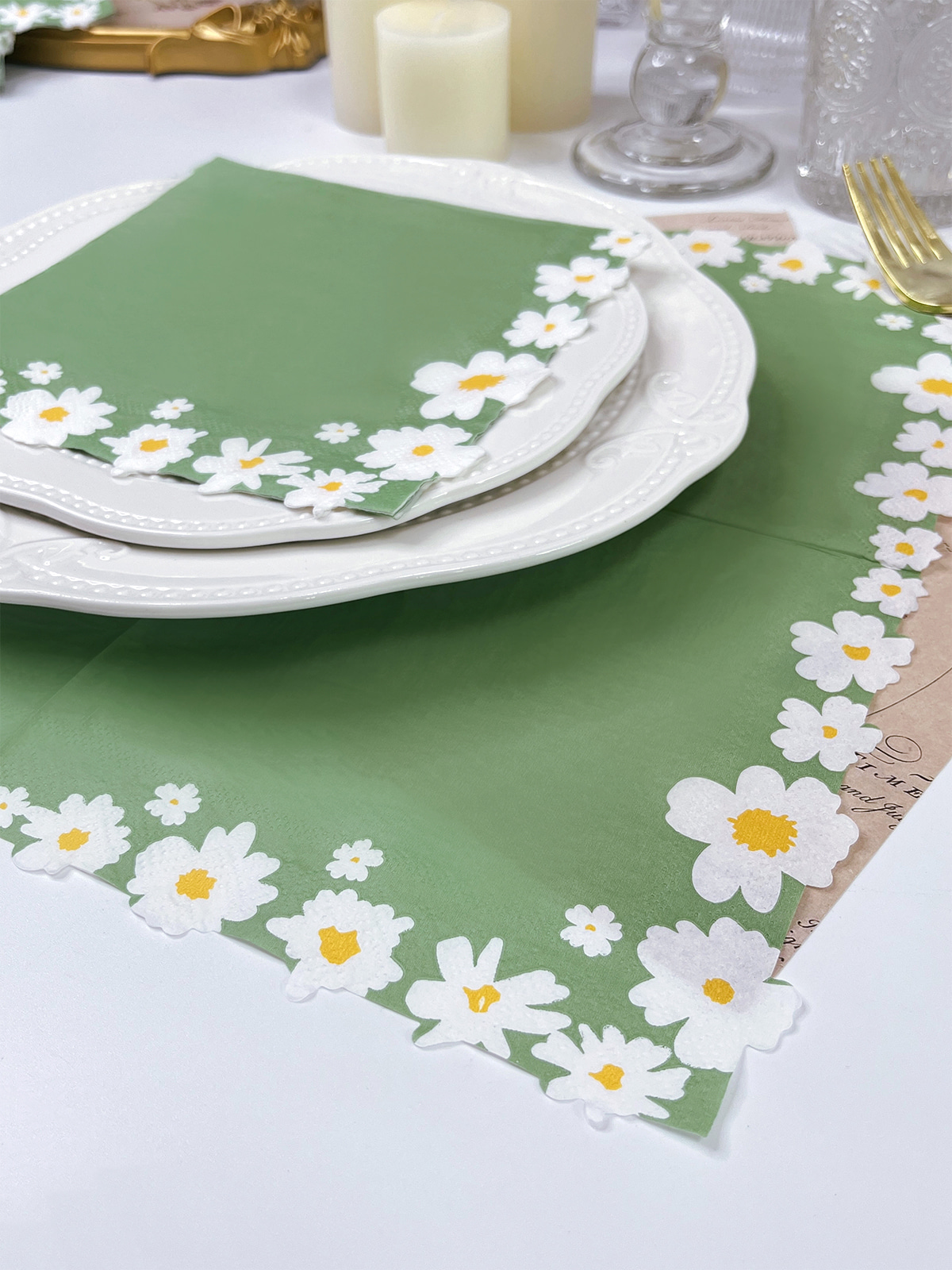 Tá an Naipcíní Páipéar Múnlaithe Floral seo 13 x13 orlach nuair a bhíonn sé gan fillte, agus 6.5 x 6.5 orlach nuair a bhíonn sé fillte.